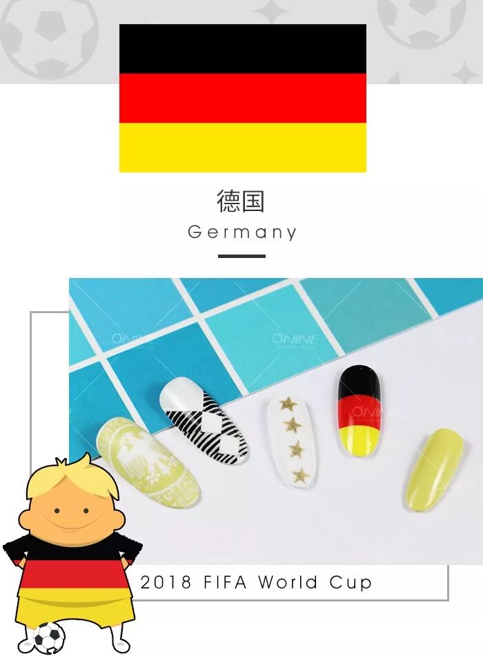 要知道,德国队已经36年没有在世界杯首秀上输球了,希望这款淡雅个性的美甲能稍稍抚慰德国球迷和天台上的小伙伴~